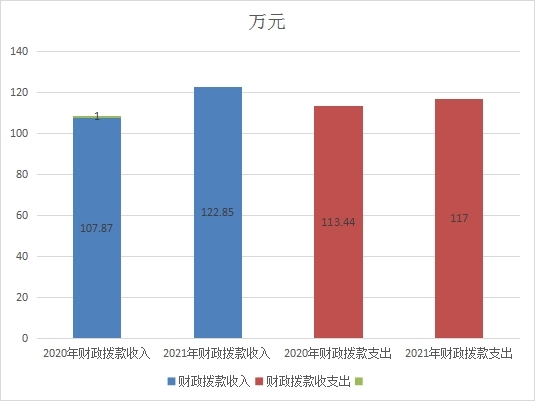 2021年财政拨款收入总计122.85万元。与2020年相比,财政拨款收入增长14.97万元,增长13.88%。财政拨款支出总计117.00万元。与2020年相比,财政拨款支出增长3.6万元,增长3.2%。主要变动原因收入增长财政补助预算调资、疫情防控补助等正常增长,支出增加是疫情防控人员经费和公用经费同时增加。