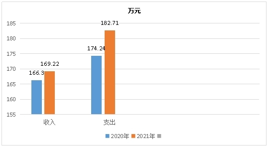 2021年度收入总计169.22万元、支出总计182.71万元。与2020年相比收入增长2.92万元,增长1.75%,支出增加8.47万元,增长4.86%。主要变动原因收入增长财政补助预算调资、疫情防控补助等正常增长,支出增加是疫情防控人员经费和公用经费同时增加。