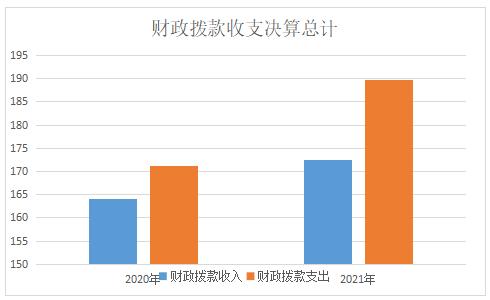2021年财政拨款收入总计172.4万元。与2020年相比,财政拨款收入增加8.25万元,增长5%;2021年财政拨款支出总计189.73万元。与2020年相比,财政拨款支出增加18.53万元,增长10.82%,主要变动原因是新进人员工资、正常调资工资福利费增加及疫情防控期间各项费用增加。
