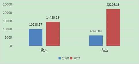 2021年度收入总计14480.28万元、年初结转和结余14233.09万元。支出总计22226.16万元,年末结转结余6487.21万元。与2020年相比,收入增加4241.91万元,增长41.43%,支出增加15855.27万元,增长 248.87%。主要变动原因是项目增加。