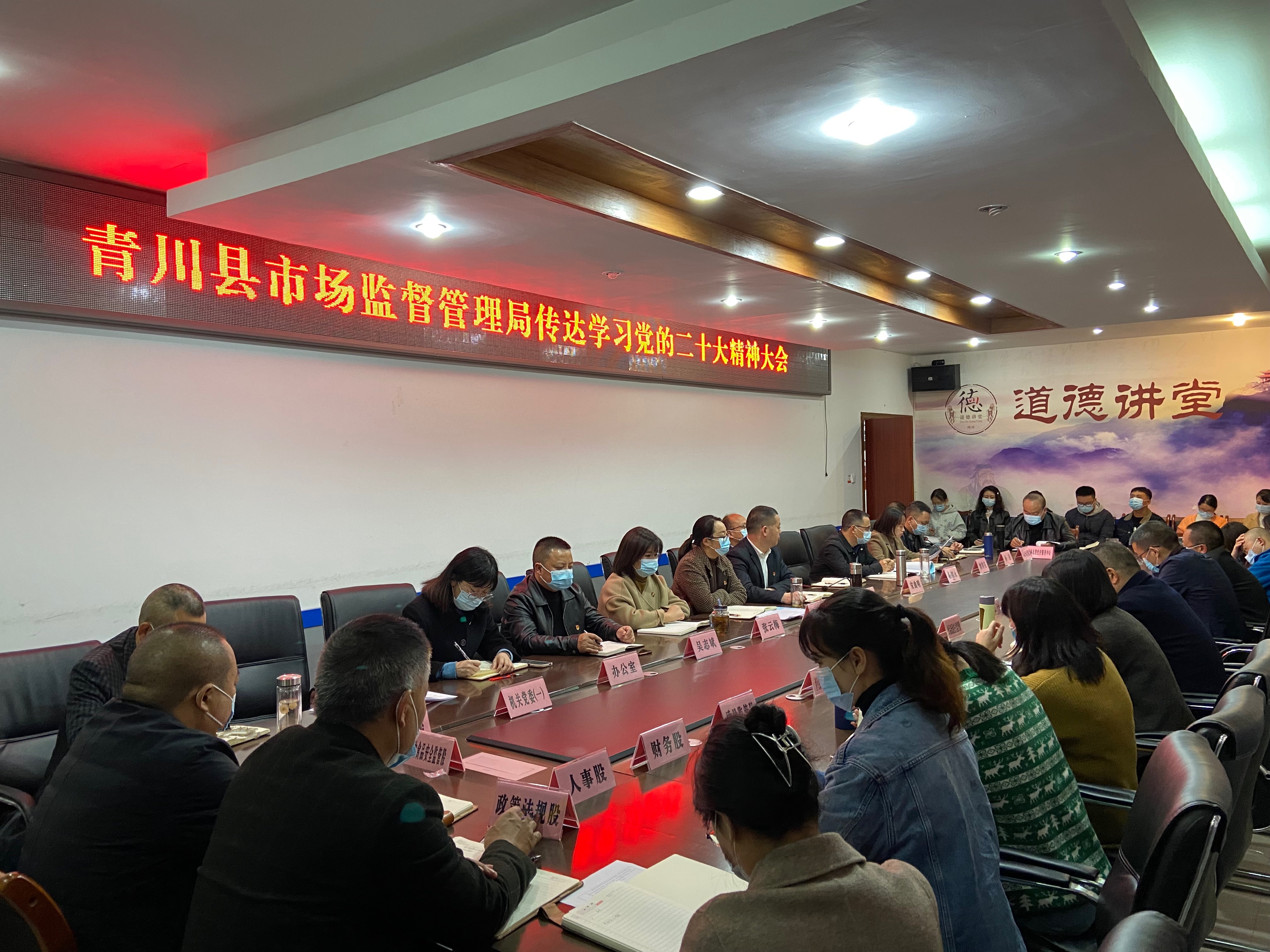 10月27日,青川县市场监督管理局召开干部职工会议,传达学习党的二十大精神,局党组书记、局长何先海主持会议并讲话。