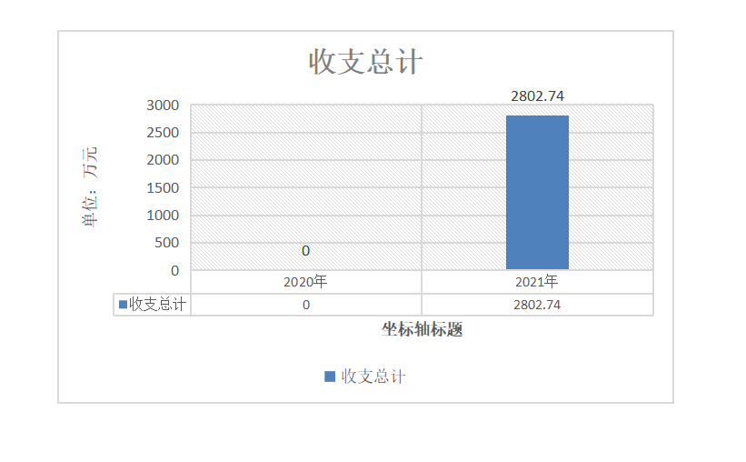 2021年度收、支总计2802.74万元。与2020年相比,收、支总计增加2802.74万元万元,增长100%。主要变动原因是2020年我中心未独立决算。