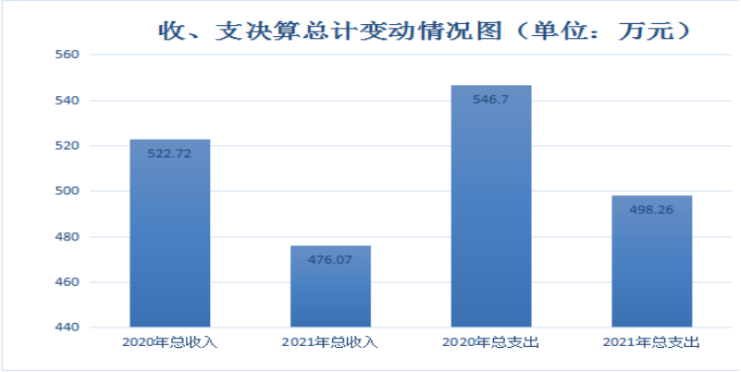 2021年关庄初级中学校收入总计476.07万元,支出总计498.26万元。与2020年相比,收入总计减少46.65万元、支出减少65.95万元。总收入变动的主要原因为:一是一般公共预算财政拨款收入减少了48.44万元,主要原因为教职工较2020年相比减少了2人;二是事业收入减少0.00万元;三是其他收入增加了1.79万元,主要为教师节政府慰问金、银行利息。总支出变动的主要原因为:一是教育支出减少95.15万元,主要支出为补发以前年度年度奖金、退休人员一次性补助、职工晋级工资调整以及项目资金减少等;二是社会保障和就业支出增加13.98万元,主要原因为基数增大;三是卫生健康支出增加2.97万元,主要因为基数增大;四是住房保障支出增加12.25万元,主要为将发放的人员奖金纳入住房公积金缴存基数。