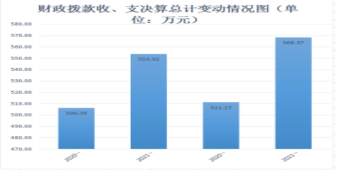 青川县大院民族学校2021年财政拨款收入总计553.92万元、支出总计568.37万元。与2020年相比,财政拨款收入增加47.53万元,增长9.39%;财政拨款支出增加57.2万元,增长11.19%,以上主要变动原因:奖励性绩效增加,薪级正常晋升、岗位晋级、五险一金缴费增加导致一般公共预算财政拨款收入增加;二是2021年拨付以前年度人员资金及项目资金导致财政拨款支出增加。