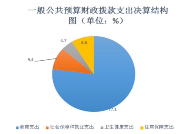 青川县大院民族学校2021年一般公共预算财政收入合计553.92万元。其中:普通教育收入423.73万元,占76.5%;社会保障和就业支出收入53.41万元,占9.64%;卫生健康支出收入26.68万元,占4.82%;住房保障支出收入50.10万元,占9.04 %。