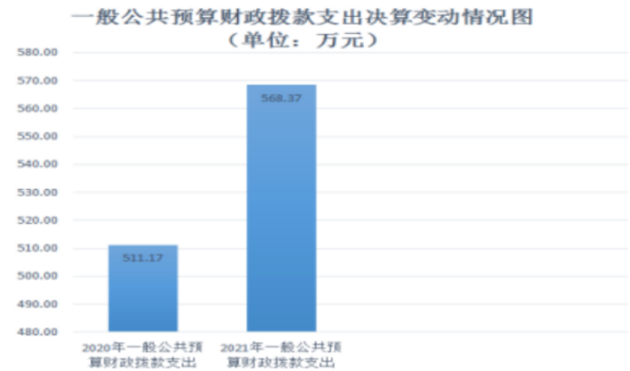 (一)一般公共预算财政拨款支出决算总体情况青川县大院民族学校2021年度一般公共预算财政拨款支出568.37万元,占本年支出合计的99.15%。与2020年相比,一般公共预算财政拨款支出增加57.2万元,增长11.19%,主要变动原因为拨付以前年度人员资金及项目资金。