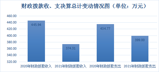 青川县三锅镇中心小学校2021年财政拨款收入总计374.31万元、支出总计399.00万元。与2020年相比,财政拨款收入减少71.63万元,下降16.06%;财政拨款支出减少35.77万元,下降8.23%,以上主要变动原因:2021年教职工人数较2020年减少了3人导致财政拨款收入减少。