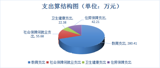 2021年青川县三锅镇中心小学校支出合计400.67万元,其中:教育支出280.41万元,占69.99%;社会保障和就业支出55.68万元,占13.90%;卫生健康支出22.38万元,占5.58%;住房保障支出42.21元,占10.53%。
