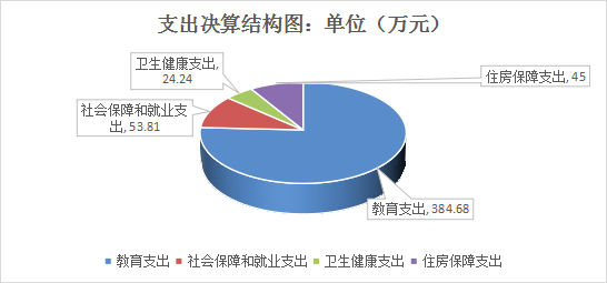 2021年一般公共预算财政拨款支出506.07万元,主要用于以下方面:教育支出383.03万元,占75.69%;社会保障和就业支出53.81万元,占10.63%;卫生健康支出24.24万元,占4.79%;住房保障支出45万元,占8.89%。