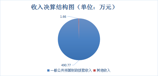 2021年本年收入合计492.42万元,其中:一般公共预算财政拨款收入490.77万元,占99.66%;其他收入1.66万元。占0.34%。