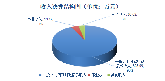 2021年本年收入合计326.89万元,其中:一般公共预算财政拨款收入303.09万元,占92.72%;事业收入13.18万元,占4.03%;其他收入10.62万元,占3.25%。
