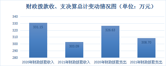 2021年财政拨款收入总计303.09万元,支出总计308.70万元。与2020年相比,财政拨款收入减少28.06万元,下降8.47%。支出减少17.93万元,下降5.49%。主要变动原因是:2021年教职工人数较2020年减少。