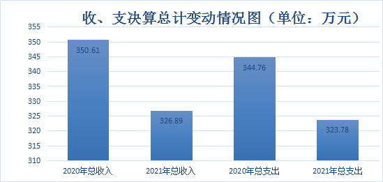 2021年度收入总计326.89万元,支出总计323.78万元。与2020年相比,收入减少23.72万元,下降6.77%。支出减少20.98万元,下降6.09%。总收入变动的主要原因为:一是一般公共预算财政拨款收入减少了28.06万元,主要原因为教职工较2020年相比减少了2人;二是事业收入减少4.4万元,主要为2021年幼儿招生数减少;三是其他收入增加了8.74万元,主要为拨付2021年美丽乡村学校奖补资金10万元。总支出变动的主要原因为:一是教育支出减少28.72万元,主要为教职工较2020年相比退休了1人,调出了1人;二是社会保障和就业支出增加0.64万元,主要为职工保险缴存基数增加及补缴12年特岗教师断保保险;三是卫生健康支出增加0.97万元,主要为职工医保缴存基数增加;四是住房保障支出增加6.13万元,主要为将发放的人员奖金纳入住房公积金缴存基数。