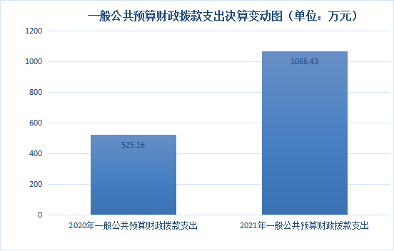 青川县乔庄幼儿园2021年度一般公共预算财政拨款支出1066.43万元,占本年支出合计的92.68%。与2020年相比,一般公共预算财政拨款支出增加541.27万元,增长103.07%,主要变动原因为拨付以前年度人员资金及项目资金。