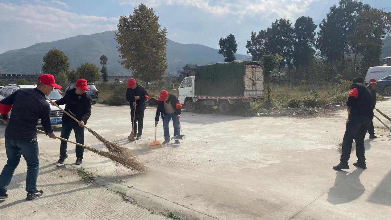 志愿者们戴红帽、挂袖章、拿起扫把带头到路边、房边、游道边打扫卫生并带头开展生活垃圾分类。充分发扬不怕脏、不怕累的优良作风和团结协作的良好精神风貌。面对堆满的沉积淤泥、难闻刺鼻的气味,志愿者没有丝毫退缩,积极发挥先锋模范作用。认真、细致地打扫每个角落,确保卫生不留死角。