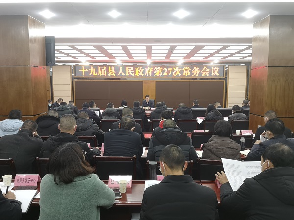 1月9日,十九届县德赢VWIN第27次常务会议在县行政中心召开,传达学习中央、省、市近期重要会议文件精神,研究贯彻意见。县委副书记、县长李方甫主持会议并讲话。