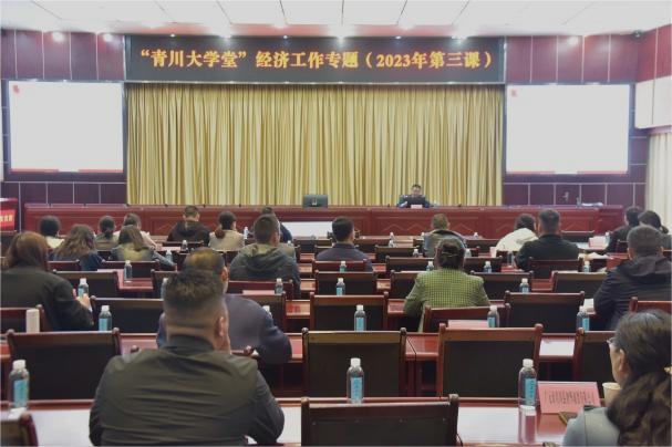 4月12日,“青川大学堂”第三期经济工作专题讲座在县行政中心举行。副县长贺俊杰主持专题讲座并讲话。