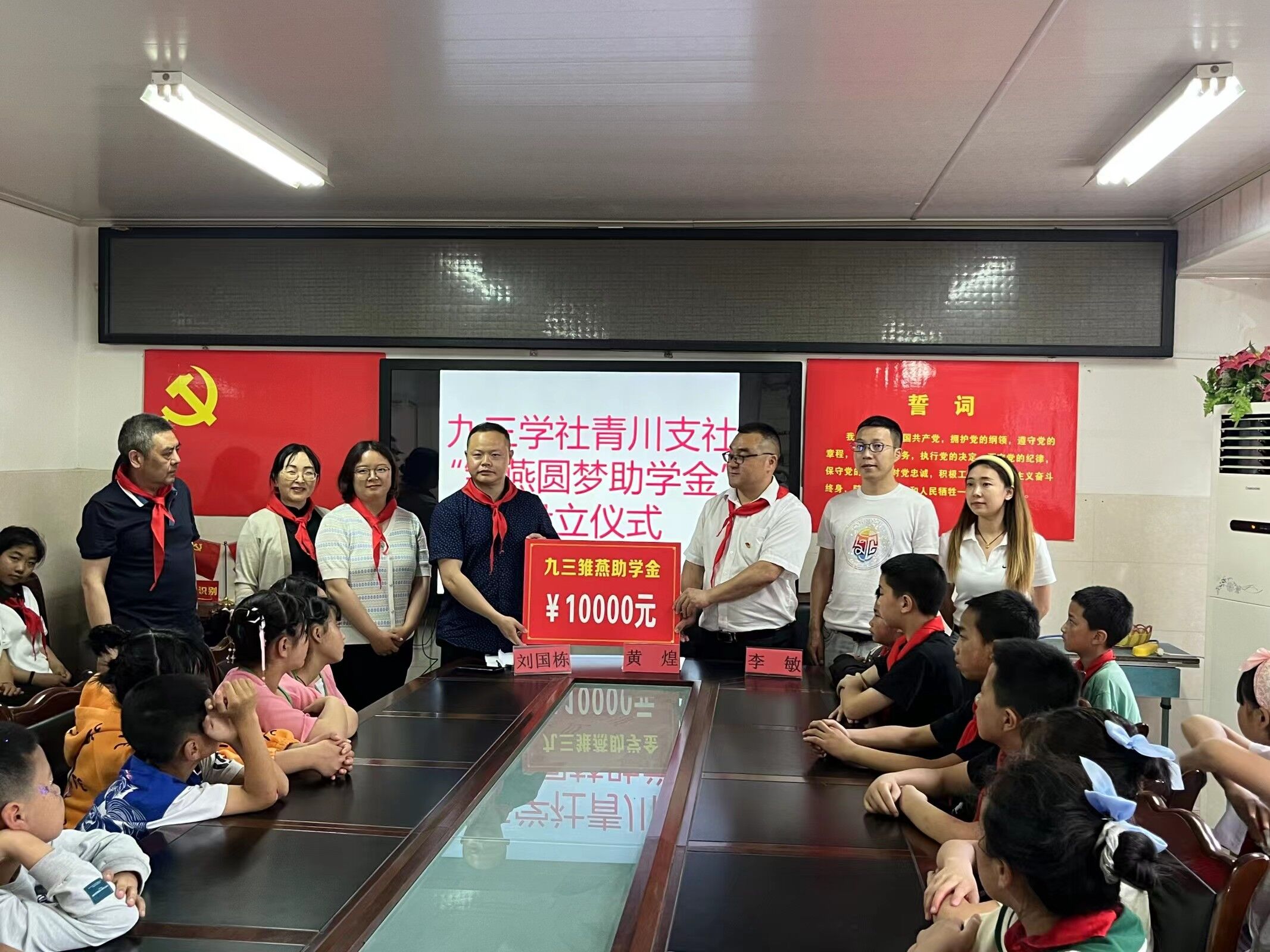 二是设立了民族团结“雏燕助学金”。九三学社青川支社多方筹措资金,积极争取九三学社北京市委机关支社的支持,为蒿溪回族乡民族学校争取到了1万元的助学金。希望民族学校师生,不断提高中华民族共同体意识,将“雏雁助学金”用到少数民族同胞学子身上,让品学兼优的孩子能够更好地学习成长,将来做一个懂得感恩和回报社会的人,将爱心继续接力下去。