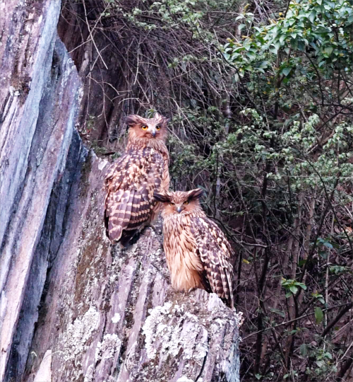 近日,大熊猫国家公园唐家河片区工作人员扩园巡护中,在片区边界的鱼洞砭岩石上发现了一只黄腿渔鸮幼鸟,更为珍贵的是此时正值黄腿渔鸮幼鸟出巢试飞阶段,工作人员随即进行驻点跟踪观察。