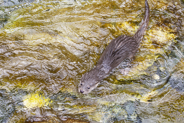 5月25日,唐家河工作人员在拍摄黄腿渔鸮幼鸟活动情况的时候,突然发现另外一只国家二级保护动物欧亚水獭在河道边缘活动。