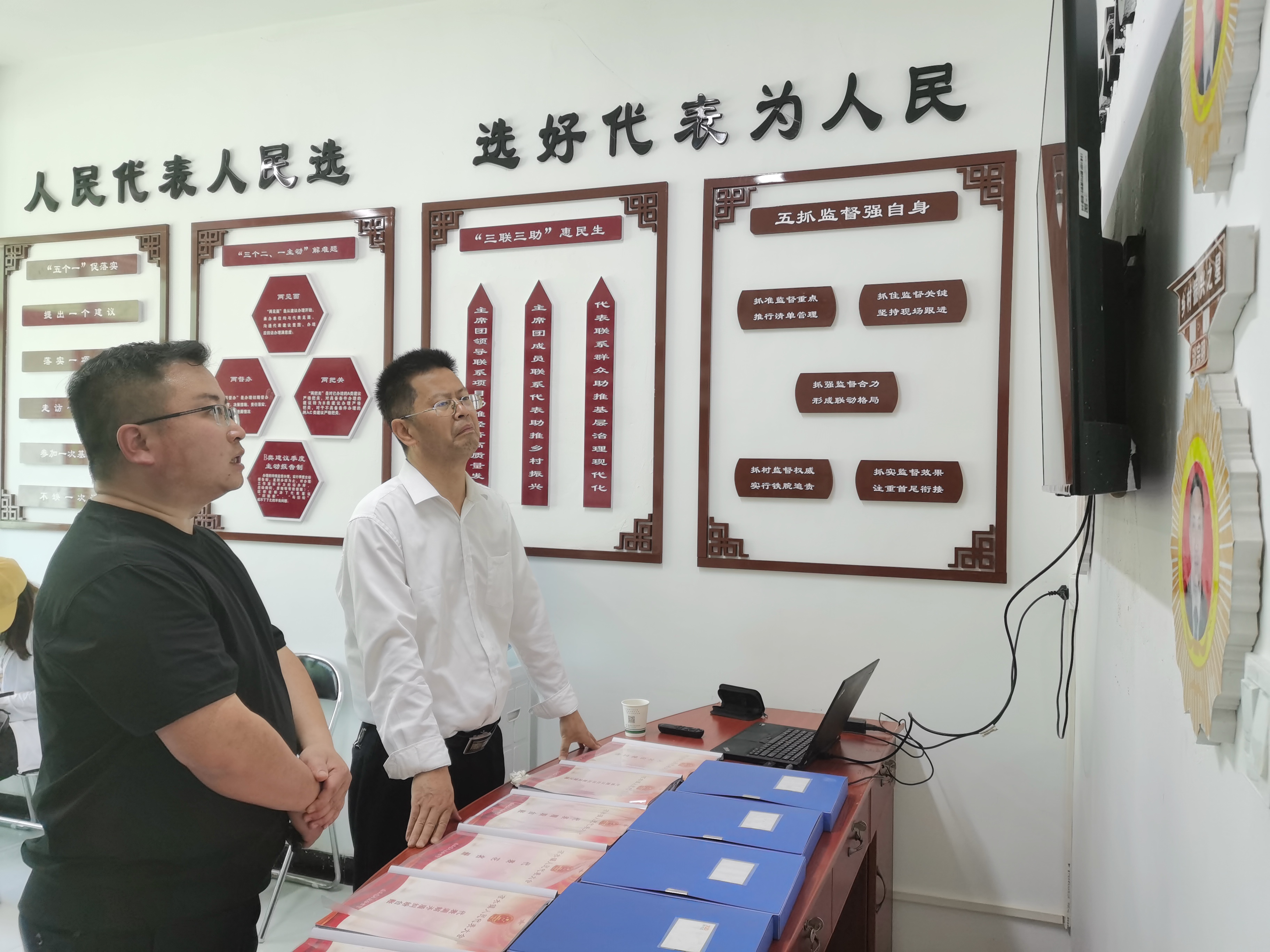 张国辉一行听取了凉水镇围绕“坚持标准化建设,助推人大工作提质增效”为主题的解说汇报,参观了“人大代表之家”建设情况,现场查阅了人大规范化建设和人大代表向选民述职软件资料。