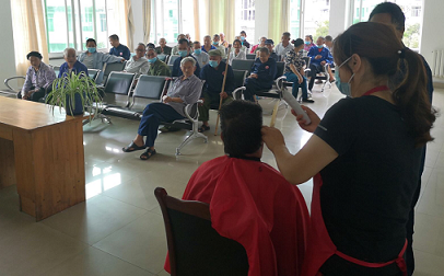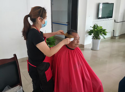 活动现场,志愿者耐心听取老人们对发型的要求,精心根据每位老人的年龄和相貌特点设计发型。只见一张凳子,一把剪刀,简单的工具,熟练的手法,伴着“咔嚓”的剪刀声,一缕缕银发落地……整个活动现场忙碌、有序。志愿者一边理发,一边与老人们唠着家常,并嘱咐他们要照顾好身体。理完发,老人们一个个变得精神抖擞、神采奕奕,焕然一新的发型让大家露出了满意的笑容。