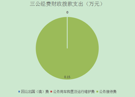 2021年“三公”经费财政拨款支出决算中,因公出国(境)费支出决算0万元,占0%;公务用车购置及运行维护费支出决算0万元,占0%;公务接待费支出决算0.15万元,占100%。具体情况如下: