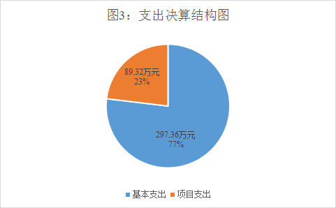 2022年本年支出合计386.68万元,其中:基本支出297.36万元,占77%;项目支出89.32万元,占23%。