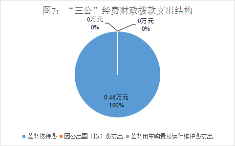 2022年“三公”经费财政拨款支出决算中,因公出国(境)费支出决算0万元,年初未安排预算;公务用车购置及运行维护费支出决算0万元,年初未安排预算;公务接待费支出决算0.46万元,占100%。具体情况如下: