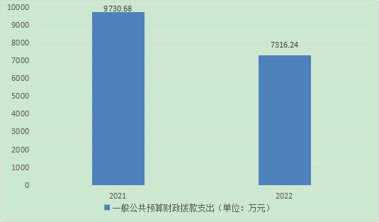 2022年一般公共预算财政拨款支出7316.24万元,占本年支出合计的35.95%。与2021年相比,一般公共预算财政拨款支出减少2414.44万元,下降24.81%。主要变动原因是新增项目达到支付条件。