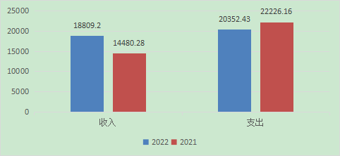 2022年度收入总计18809.20万元、年初结转和结余1543.23万元。支出总计20352.43万元,年末结转结余0万元。与2021年相比,收入增加4328.92万元,增长29.90%,支出减少1873.73万元,下降8.43%。主要变动原因是新增项目未达到支付条件。