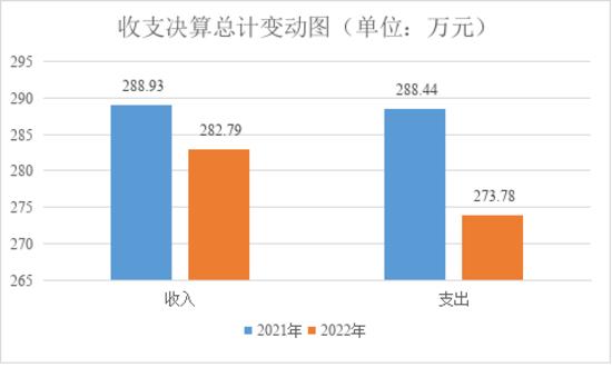 2022年度收入总计282.79万元、支出总计273.78万元。与2021年相比,收入总计减少6.14万元、支出减少14.66万元,收入减少2.13%,主要变动原因为本年度财政拨款收入减少。支出减少4.57%,支出主要变动原因是基本支出和项目支出减少。
