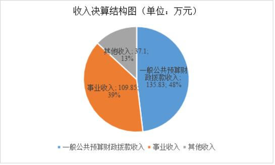 2022年本年收入合计282.79万元,其中:一般公共预算财政拨款收入135.83万元,占48.03%;事业收入109.85万元,占38.85%;其他收入37.1万元,占13.12%。