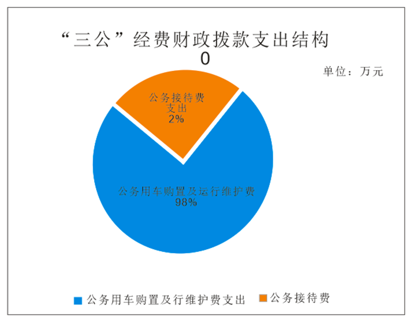 2022年“三公”经费财政拨款支出决算中,因公出国(境)费支出决算0万元,年初未安排预算;公务用车购置及运行维护费支出决算102.07万元,占98%;公务接待费支出决算2万元,占2%。具体情况如下:
