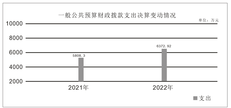 2022年一般公共预算财政拨款支出6372.92万元,占本年支出合计的100%。与2021年相比,一般公共预算财政拨款支出增加564.62万元,增长10%。主要变动原因是人员增加及中央和省级政法转移支付资金支出增加。