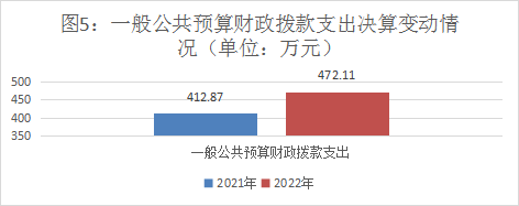 2022年一般公共预算财政拨款支出472.11万元,占本年支出合计的100%。与2021年相比,一般公共预算财政拨款支出增加59.24万元,增长14.35%。主要变动原因是人员新增和经费标准提高。