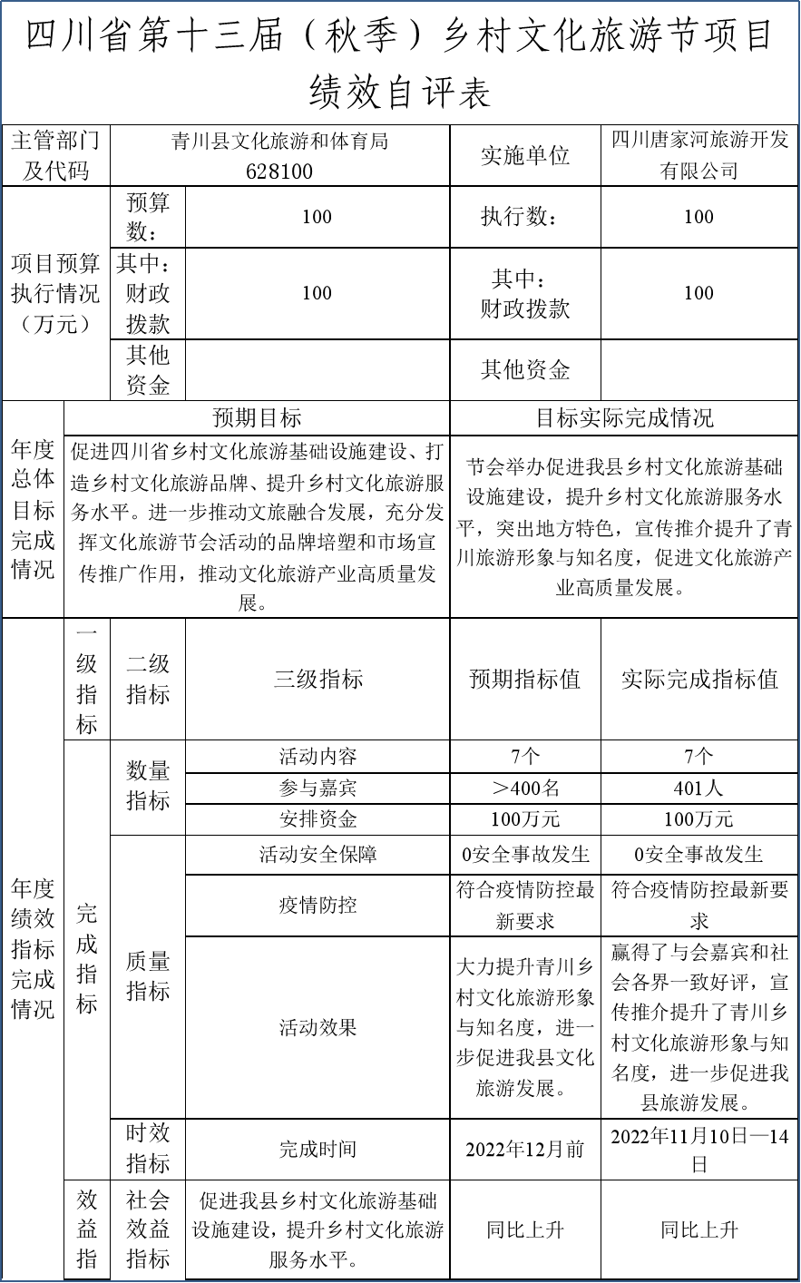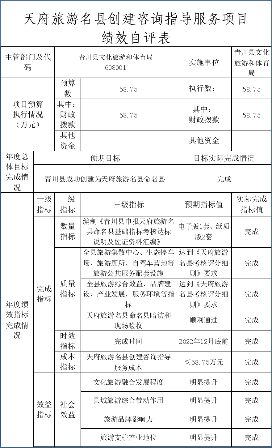 2022年青川县部门整体支出绩效评价指标体系(适用于有专项预算的部门)
