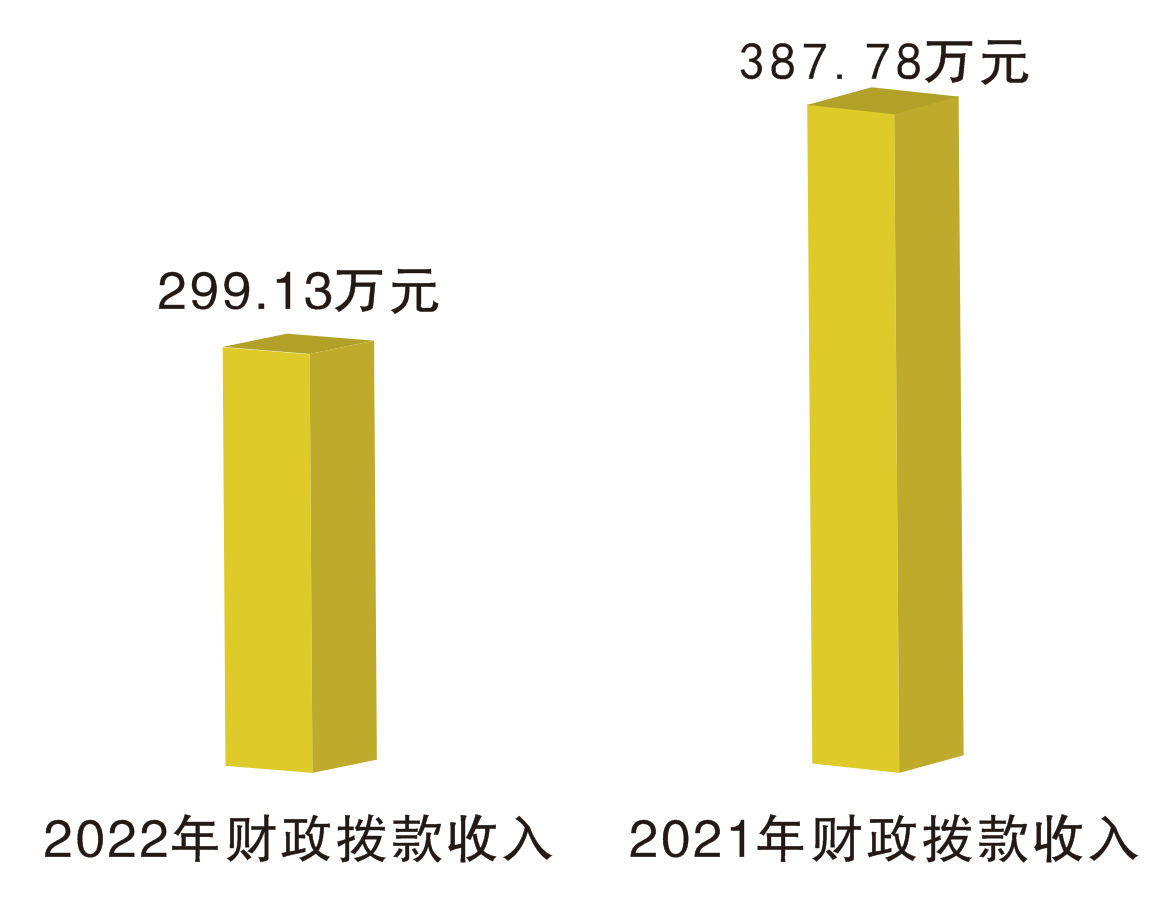 2022年度收、支总计均为299.13万元。与2021年387.78万元相比,收、支总计各减少88.65万元,下降22.86%。主要变动原因是本年度公务接待费按照要求追减29万元,年末财政应支清退33.71万元,还存在着12月份未完善手续支付的款项。