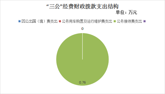 2022年“三公”经费财政拨款支出决算中,因公出国(境)费支出决算0万元,占0%;公务用车购置及运行维护费支出决算0万元,占0%;公务接待费支出决算0.76万元,占100%。具体情况如下: