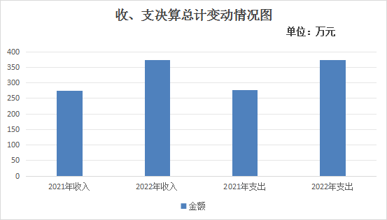 2022年度收、支总计745.04万元。与2021年相比,收、支总计各增加98.04万元、95.64万元,收、支各增长35.72%、34.54%。主要变动原因是: