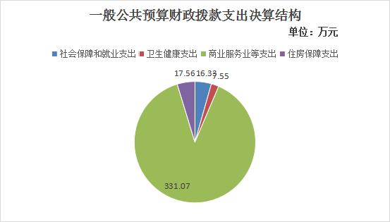 2022年一般公共预算财政拨款支出372.52万元,主要用于以下方面:社会保障和就业支出16.33万元,占4.38%;卫生健康支出7.55万元,占2.03%;住房保障支出17.56万元,占4.71%;商业服务业等支出331.07万元,占88.87%。
