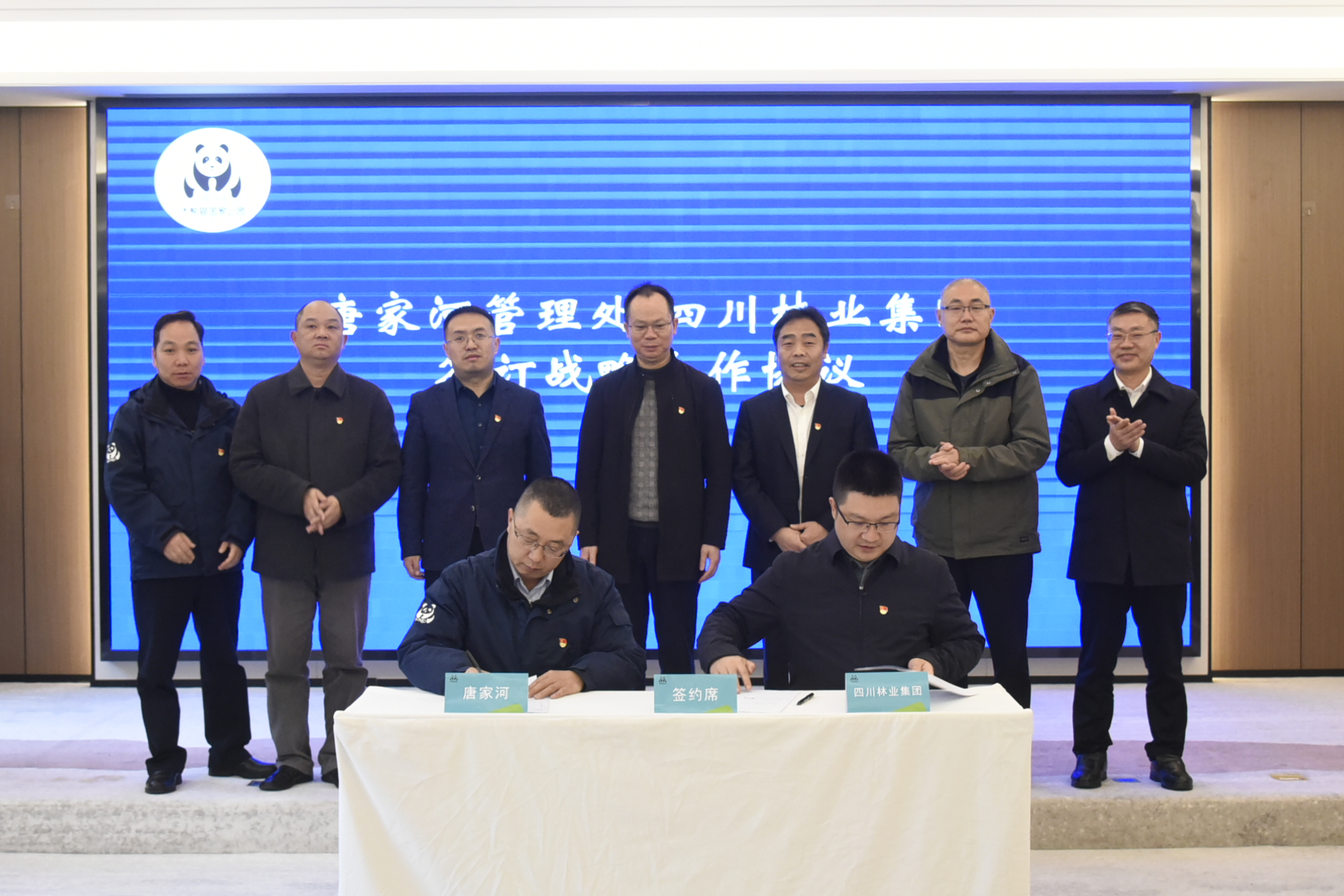 省林草局党组成员、副局长陈宗迁表示,唐家河和川林集团都有着丰富的生态保护建设经验,具有扎根一线的专业化巡护监测队伍。希望两家携手高质量推进大熊猫国家公园建设,为打造生物多样性保护示范区域、生态价值实现先行区域、世界生态教育展示样板区域先行一步,做深一层,争当示范者、引领者。携手推进生态产品价值转化,围绕“天府森林四库”建设等重点任务,聚焦生态旅游、森林康养、自然教育、绿色种养等特色产业,开展多领域多形式的合作,推动产品变商品、资源变资本、价值变产值,加快产业转型,惠及更多群众,实现生态效益、经济效益、社会效益共生多赢。携手维护林草资源安全,强化底线思维,严防发生破坏林草资源、偷采盗猎野生动植物等案件,严防发生重大林草有害生物灾害,特别要在森林草原火灾防控上多下功夫、多花精力,前移关口,建强队伍,切实守住山、看住人、管住火,为推动高质量发展营造良好的安全生产氛围。