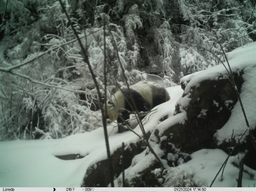 该红外相机安装在大白包区域海拔约2700米处,从相机拍摄的数据中显示,仅2024年2月就多次记录到该大熊猫活动场景。画面中,大熊猫母子体态圆润,行动敏捷,展现出其健康的生活状态。经工作人员分析,此次记录的成年大熊猫与2023年拍摄的为同一只,不同的是这一次增添了一名新成员。连续三年记录到野生大熊猫在此区域活动,不仅表明该区域经过栖息地修复等有效保护措施已经是大熊猫的适宜栖息地,也表明唐家河的野生大熊猫种群在不断繁衍扩大。