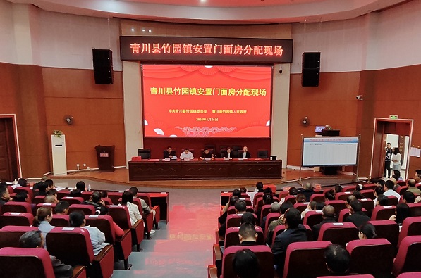 4月26日,青川县竹园镇安置门面房分配顺利在县进修校学术报告厅举行。