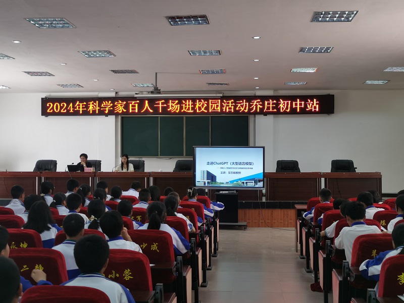 为将价值引领融入立德树人全过程,用新时代科学家精神铸魂育人,引导中小学生走近科学家、了解科学家精神、增强科学探索的好奇心,5月13日至5月16日,“科学家百人千场进校园”活动走进青川校园。广元市物联网技术与应用重点实验室主任、四川省应用电子技术专业学科带头人吴志毅以“走进ChatGPT(大型语言模型)——探索人工智能在对话交流领域的革命性突破”为主题开展了讲座。乔庄初中、青川中学、青川一中、木鱼初中共1000余名师生参与了活动。