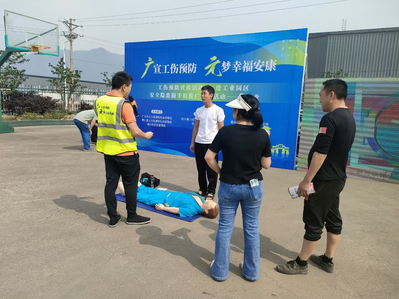 此次活动共分为三个阶段进行,第一阶段为职业健康培训,由培训公司工作人员讲解并演示了人工呼吸、心肺复苏、海姆立克等急救方法,提升企业员工应急自救能力;第二阶段为安全生产知识培训,演示了灭火器、呼吸器等安全用具使用方法,同时宣传推广了广元安全隐患随手拍小程序,鼓励企业员工积极发现上报安全隐患;第三阶段为工伤保险政策宣讲,进行了工伤保险政策宣讲与现场答疑,提高了员工政策知晓度。活动现场气氛热烈,员工参与踊跃积极,现场发放了宣传资料300余份,共吸引50余家企业300余名员工参与。