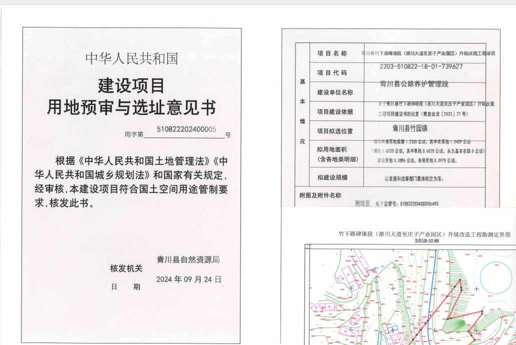 关于青川县竹下路碑垭段(浙川大道至庄子产业园区)升级改造工程项目用地预审与选址意见书的公示