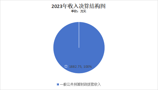 2023年度本年收入合计1882.75万元,其中:一般公共预算财政拨款收入1882.75万元,占100%。