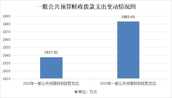 2023年度一般公共预算财政拨款支出1883.45万元,占本年支出合计的100%。与2022年度相比,一般公共预算财政拨款支出增加45.63万元,增长2.48%。主要变动原因是基本支出增加23.4万元、项目支出增加23万元。