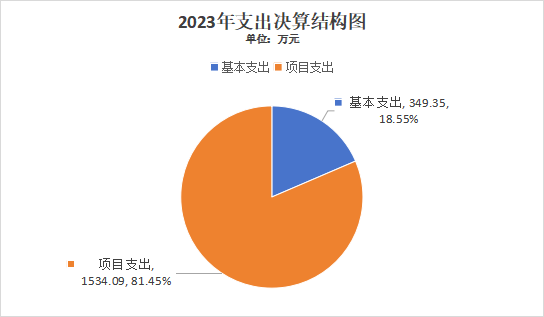 2023年度本年支出合计1883.45万元,其中:基本支出349.35万元,占18.54%;项目支出1534.09万元,占81.45%。